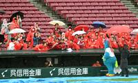 フリー打撃練習で力強いスイングを見せる広島・田中広輔=マツダスタジアム