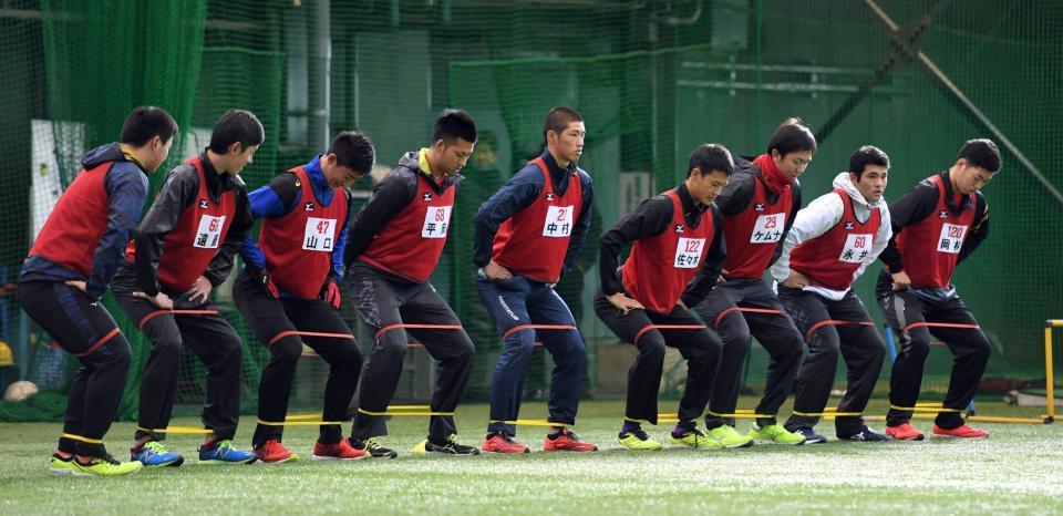 新人合同自主トレスタート ドラ1中村奨、自慢の強肩披露