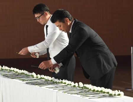 今年4月23日に急逝した元広島の衣笠祥雄さん(享年71)のお別れの会が28日、広島市内のホテルで開催された。午前中には広島の監督、コーチ、選手らが献花に参列。緒方孝市監督(49)は「4月23日に亡くなられて、この2カ月あっという間だった。今年のキャンプにたくさん野球の話ができると思っていたができなくて、シーズン中もできなくて、本当に残念で、悲しい気持ちです」と声を絞り出した。