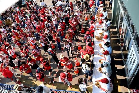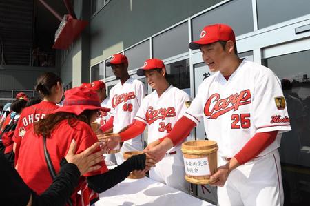 午後3時20分の開始時間から多くのファンが詰めかけ、選手らはハイタッチも交わした。この日はマツダスタジアムでは豪雨発生後初で、16日ぶりの試合。緒方監督は「この暑い中、大汗かいた中でたくさんの募金を頂いて本当に心から感謝しています」と語り、選手会長の会沢は「僕らは本当にプレーで明るいニュースを届けられるようにやっていきたい」と力を込めた。