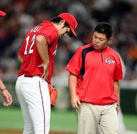 九里にアクシデント 先頭坂本勇の打球が右脇腹付近直撃 ベンチに下がるも続投