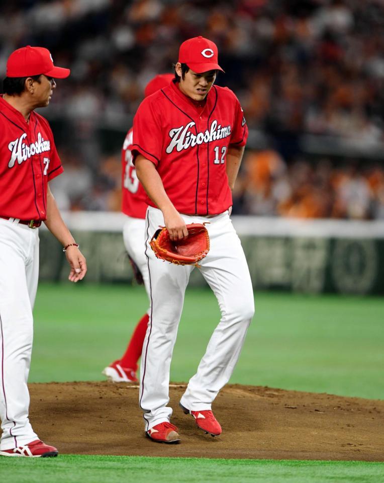九里にアクシデント 先頭坂本勇の打球が右脇腹付近直撃 ベンチに下がるも続投