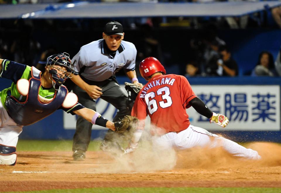 カープ 土壇場の九回に追い付く 野間が左犠飛