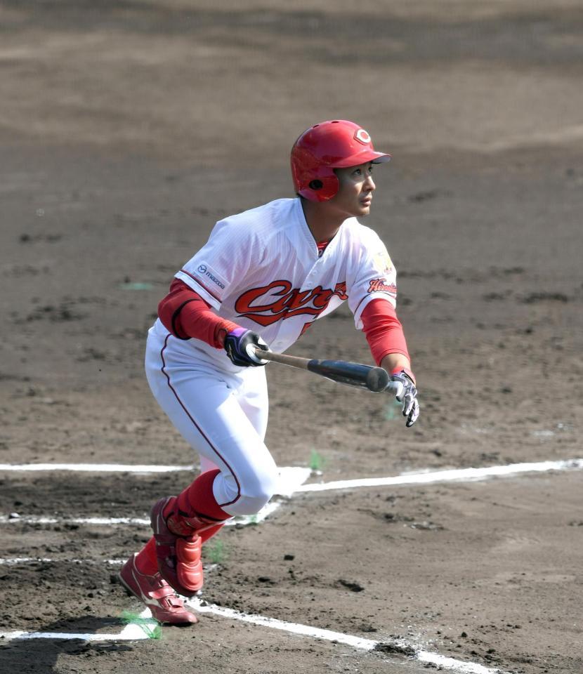 秋季キャンプ初のシート打撃 坂倉が2安打でアピール