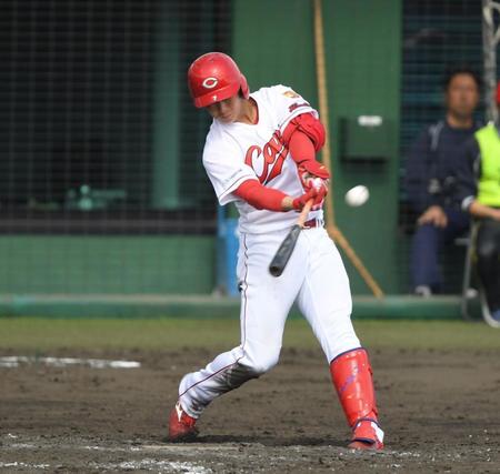 堂林がアピール弾 インフルエンザの安部に代わって練習試合に出場