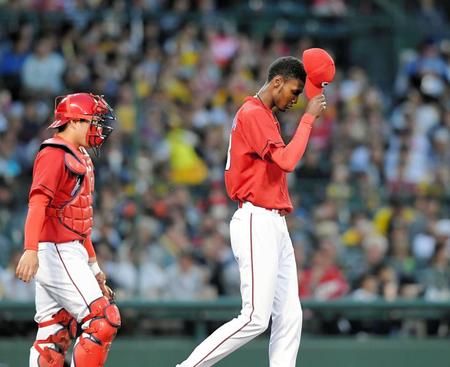 低めへの制球力が最大の武器。佐々岡投手コーチは「四球から崩れる投手ではないのに。きょうはどうしたのか…」と首をかしげるしかなかった。
