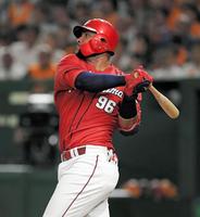 2回、中前打を放つメヒア(撮影・中田匡峻)