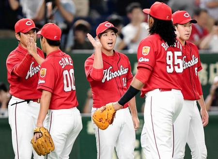 佐々岡投手コーチは「三回以降は右、左に関係なく内角を攻めていた。だから外の変化球も生きた」と振り返った。