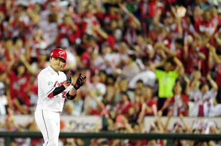 まずは1死一、二塁。会沢が上茶谷の外角直球を中前へはじき返し、二走・鈴木が生還。「後ろにつなぐ気持ちでセンター方向へコンパクトに打つことができました」とコメントした。