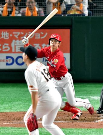 広島は敗戦の中で“ニシキク”の1、2番コンビが光を放った。初回に菊池涼が左中間席へ11号ソロを放つと、三回には西川が14号の右越えソロで加点した。今季3度目となるアベック弾は、菅野に嫌なイメージを植え付けた一発攻勢だ。