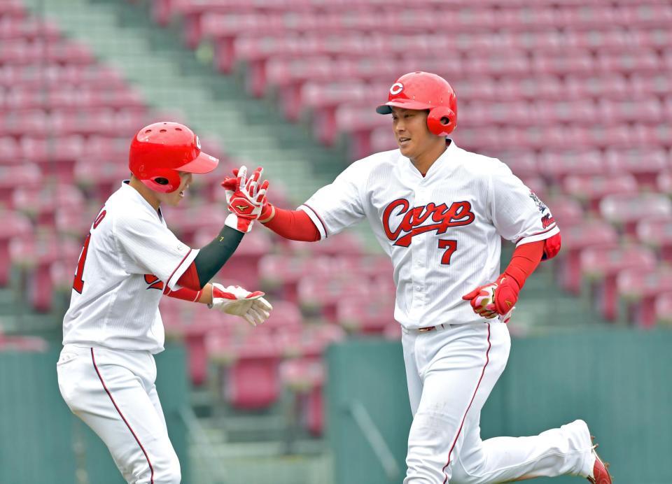 広島・堂林が“完璧”先制2ラン 内角高めをとらえレフト特大弾