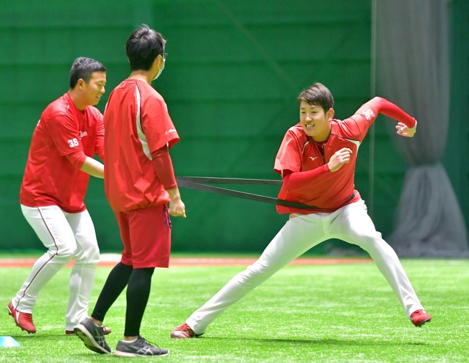 広島・遠藤、2時間限定練習でブルペン入り「試合をイメージして」