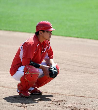 広島の会沢翼捕手(32)が17日、ほぼ1カ月ぶりに捕手用のレガースを着用して練習に臨んだ。