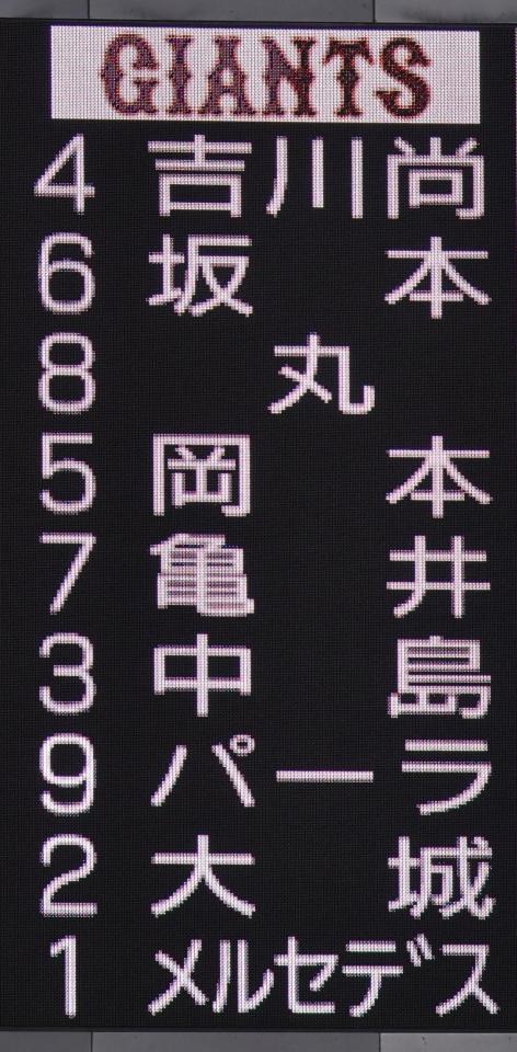 広島2番菊池涼 7番堂林 巨人バッテリーはメルセデス-大城【スタメン】