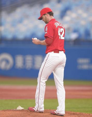 先発した広島のK.ジョンソンは5回を投げ7安打4失点(自責点3)で2敗目を喫した。