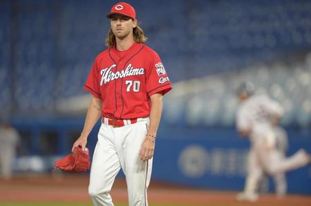 佐々岡監督が「フォアボールからの連打だからね」と振り返った九回。スコットは先頭の坂口に四球を与え、山田哲、青木に連打を許し無死満塁。4番村上にサヨナラ満塁本塁打を浴びた。