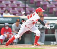 1回、先制の適時内野安打を放つ西川(撮影・立川洋一郎)