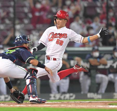 足でも魅せた。続く菊池涼が一時逆転となる3点適時二塁打を左翼線に放った際には、一塁から全力疾走。持ち味である俊足を生かして本塁へスライディングし、間一髪セーフ。逆転のホームを踏んだ。