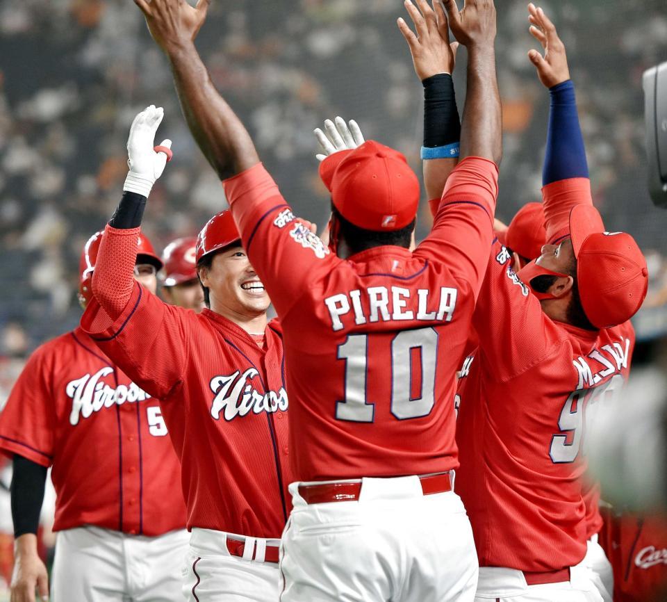 広島・長野 12球団本塁打&カープ8500号 元同僚の菅野から5号3ラン