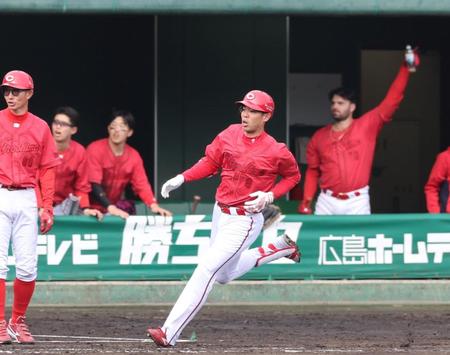広島“チーム1号”の秋山翔吾「いろんな狙いを持ってやれた」キャンプ初実戦で貫禄の一打