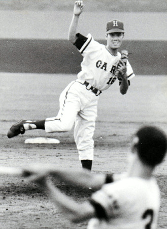 若さあふれるピッチングで巨人の長嶋から三振を奪う安仁屋=1964年
