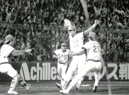 V2を決め歓喜の江夏=1979年10月6日