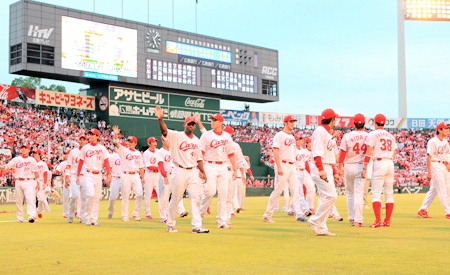 ファンの声援に応えながら場内を一周するカープナイン