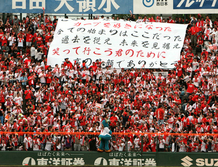 ライトスタンドに掲げられた大きなフラッグ