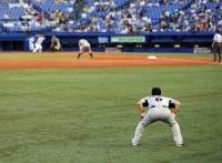 一回裏。金本が62試合ぶりに左翼の守備につくと、ヤクルト側の応援席も拍手で出迎えた。注目の守備機会は四回、畠山の放ったほぼ定位置の左飛を捕球した一度のみだったが、定位置を守り抜いた金本の存在感は格別だった。