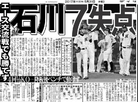 5月30日 石川7失点降板後ベンチで動けず 交流戦も不振