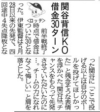 最低でも2勝1敗のつもりが3タテを食らった。ついに借金は、26年ぶりの「30」となった。「(借金を)少しでも返していくしかない。最後まで諦める姿を見せるわけにはいかない。全員で頑張るしかない」残り試合は62。伊東監督は前半戦をこう締めくくった。その姿には最後まで戦う決意がにじんでいた。
