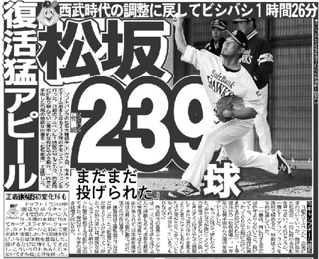 ソフトB松坂、今キャンプチーム最多239球 復活猛アピール