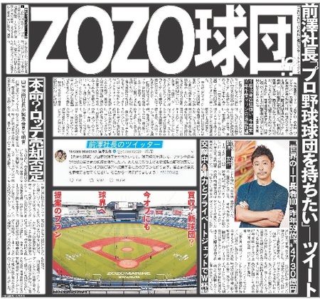 ZOZO球団!?前澤社長、球団運営に意欲 買収?新球団?今オフにもプラン提案