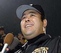 少年時代からの夢を、最高の形でかなえた伊良部。今季は、それに「優勝」という花を添えるために右腕を振るう。「1年間頑張ります。よろしくお願いします」。新たな夢への第一歩が、いま、大きく踏み出された。(松下雄一郎) |