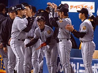 圧巻は五回だ。鈴木尚、ウッズ、佐伯のクリーンアップを三振斬りに仕留める。「一回は大事にいきすぎたけど、だんだんリズムがよくなった。(四回の)ゲッツーが大きかったね」と佐藤投手コーチは、ここぞで踏ん張る伊良部の粘投を高く評価した。