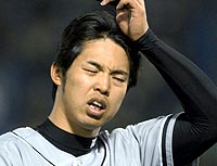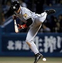 | 三回には今岡に続いてタイムリーを放った赤星、八回には死球を受ける |