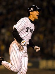 | ♪勝ったぁ、勝ったぁ、また勝ったぁ、よ〜わい巨人にまた勝ったぁ―。思わず歌っちゃいました。巨人に開幕負けなし4連勝。井川の入魂149球に心を震わせ、片岡のタイムリー2本に手を叩き、矢野の決勝2ランに声をカラして…。締めは仙さんの笑顔です。いやはや、シビれた…。 |