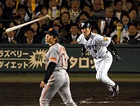 豪快に「はね返し」た。矢野だ。片岡の適時打で同点に追いついた四回、一死一、三塁の場面で、高橋尚の5球目のボール球を見送った。一塁走者の片岡は、ディレード気味にスタートを切っていた。「ちょっと振れなかった。ヒザ元へ来たんで…」と痛恨の見逃し。片岡は二塁上で憤死した。