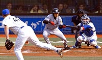 | 絶妙のセフティ−バント。トラの核弾頭は小技でも敵をかく乱 |