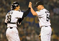 神話は続く。これで土曜日の試合では8連勝。そして自身も、土付かずの7勝目。「自分一人の力ではない。チームみんなのおかげだよ」というムーアの左腕が、5ロードを築く。この砦(とりで)は、落城しない。(道辻 歩) |