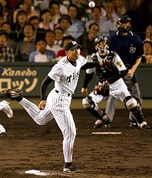 81年以来、22年ぶりとなる「カード10連勝」は、もっと楽に挙げられるはずだった。「面白かったやろ。見てる方は」。星野監督の言葉は決して本意じゃない。目標は5のみ。だから、一分のスキも与えたくない。このほろ苦さを「良薬」に変えることを、指揮官はただただ望んでいる。(岡本浩孝) |