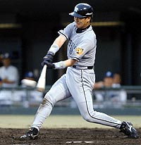 まずは金本。初回に左前打を打つ。エンジンがいきなりトップギアに入る。三回の2打席目には、二塁への内野安打で出塁すると、片岡の適時打でホームにかえった。さらに四回には、紀藤から代わった山北から中前打を打ち、桧山の中押しの犠飛を呼び込んだ。