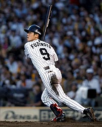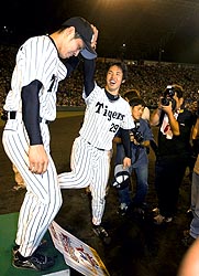 | 人間機関車・ザトペック。最強のマラソンランナーに例えられたのが、ミスタータイガースの故村山実氏だった。敵をなぎ倒し、次々と白星を重ねて行く。偉大な大先輩に、阪神・井川慶投手(23)も近づいた。4連続完投で10連勝。虎投では、村山氏以来35年ぶりの快挙で、60勝一番乗。マジックも「41」だ! |