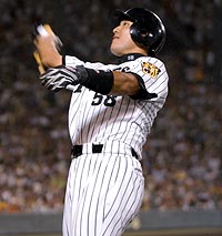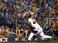 | 矢野が打てば負けへんって、知ってました?阪神・矢野輝弘捕手(34)が四回に放った12号ソロは、実は12戦負けなしの「不敗弾」だったんです。五回には「雨中の5連打」を締める適時三塁打。頼もしい男の復活で甲子園40勝、今季75勝目であの1985年を超えました。夏休み最後の31日もいい思い出を―。 |