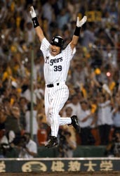 九回一死から、戦線復帰したばかりの桧山が右前打で出塁。この走者を無駄にするわけにはいかない。鬼気迫る表情で打席に立った。1―1から、ギャラードが投じた直球は、ほぼ真ん中。これを見逃す矢野ではない。無意識のうちに、全身がうねっていた。