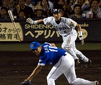 | 夢が、バックスクリーンへ届いた。阪神・矢野輝弘捕手(34)が叫ぶ。「ヨッシャーァ!」。優勝をたぐり寄せる逆転サヨナラの13号2ラン。左わき腹痛の桧山も帰って来た。“歓喜の瞬間”の予行演習で、M6に。矢野は、高らかに言った。「ファンの皆さんも、大いに喜んで下さい」―。 |