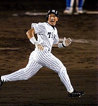 そして先頭打者として打席に立った七回には、右中間を破る当たりで三塁まで決死の走塁。「打球が見えんかった。入ったと思ったらとんでもないところに転がっとった」。足の痛さも関係ない。とにかく走る。夢に向かって走る。激走した後、桧山の右前打で追加点の本塁を踏むと、ベンチ前でへたり込んだ。