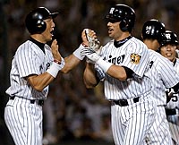 | 見たか男・金本の心意気―。満身創いの「鉄人」が呼び込んだ大勝、そしてマジック5だった。前日、左足首を負傷した阪神・金本知憲外野手(35)がケガを押して強行出場、アリアスの満塁弾を誘発する先制打と、激走三塁打でチームの士気を高めた。 |