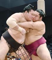 遠藤に敗れ引き揚げる白鵬=福岡国際センター