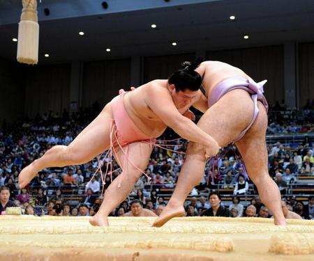 頭を下げて、一瞬の隙を逃さず飛び込み、一気に出た。だが土俵際で回られて、そのまま一回転して土俵から落ちた。お株を奪われたような逆転技に土俵下では「あー」と口を大きく開けて、悔しがった。